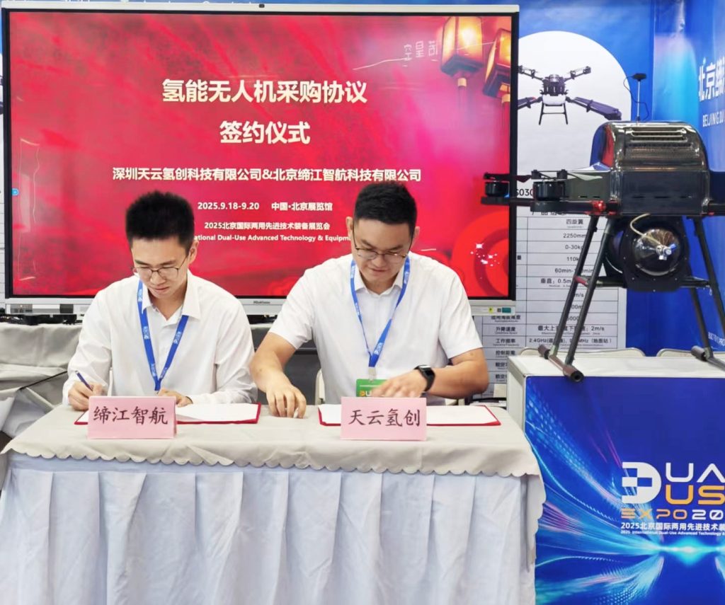 在展会期间,天云氢创与缔江智航签署了千万级的氢能无人机采购协议。此次合作,不仅为天云氢创带来了实实在在的市场拓展动能,更树立了两用先进技术装备领域 “制造企业 + 专业渠道” 合作的新标杆,为行业资源整合与高效协同提供了可借鉴的范例。