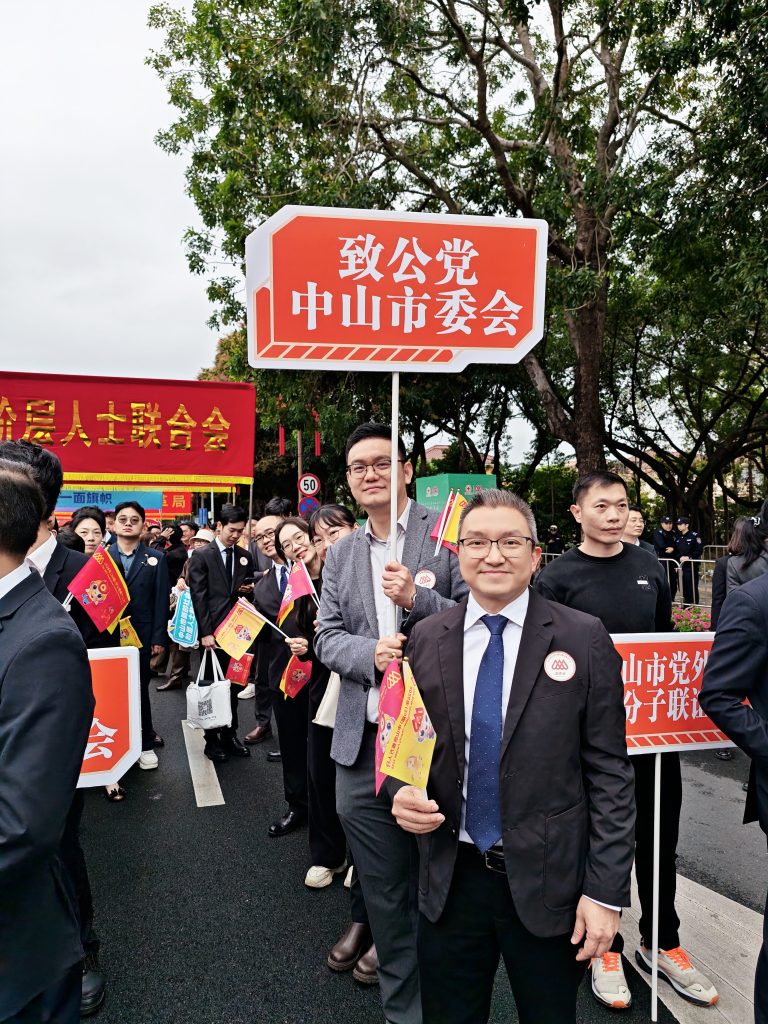 活动现场,锣鼓喧天、龙腾狮跃。作为致公党中山市委会方阵举旗手,CEO杨冷羽手持队旗、精神抖擞,带领方阵成员昂首阔步、整齐行进,充分展现致公党党员积极向上、热心公益的良好风貌,以及与中山城市同频共振、向善而行的坚定信念。