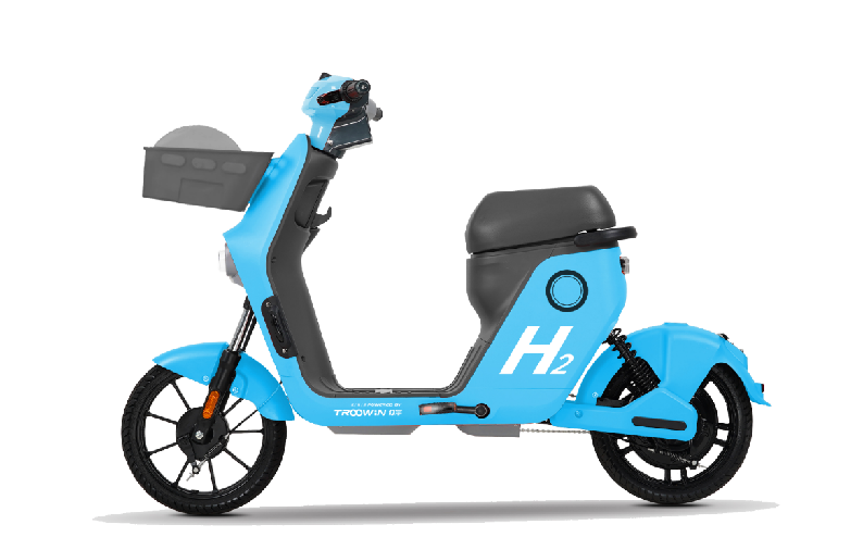 天云氢能两轮车,基于天云氢燃料电池系统自主开发,配置低压固态储氢系统,采用轻量化电堆和智能化电控系统、人性化换氢设计,具有零碳环保、安全、长续航、管理简便等特点,适用于 2 ~ 5km 出行、公共交通接驳等共享出行场景 。